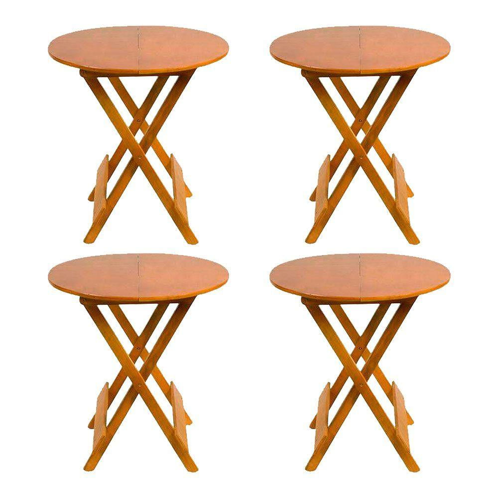 Kit 4 Mesas Redondas Dobráveis Em Madeira Maciça 70X70 Mel Ideal Para Bares E Restaurantes