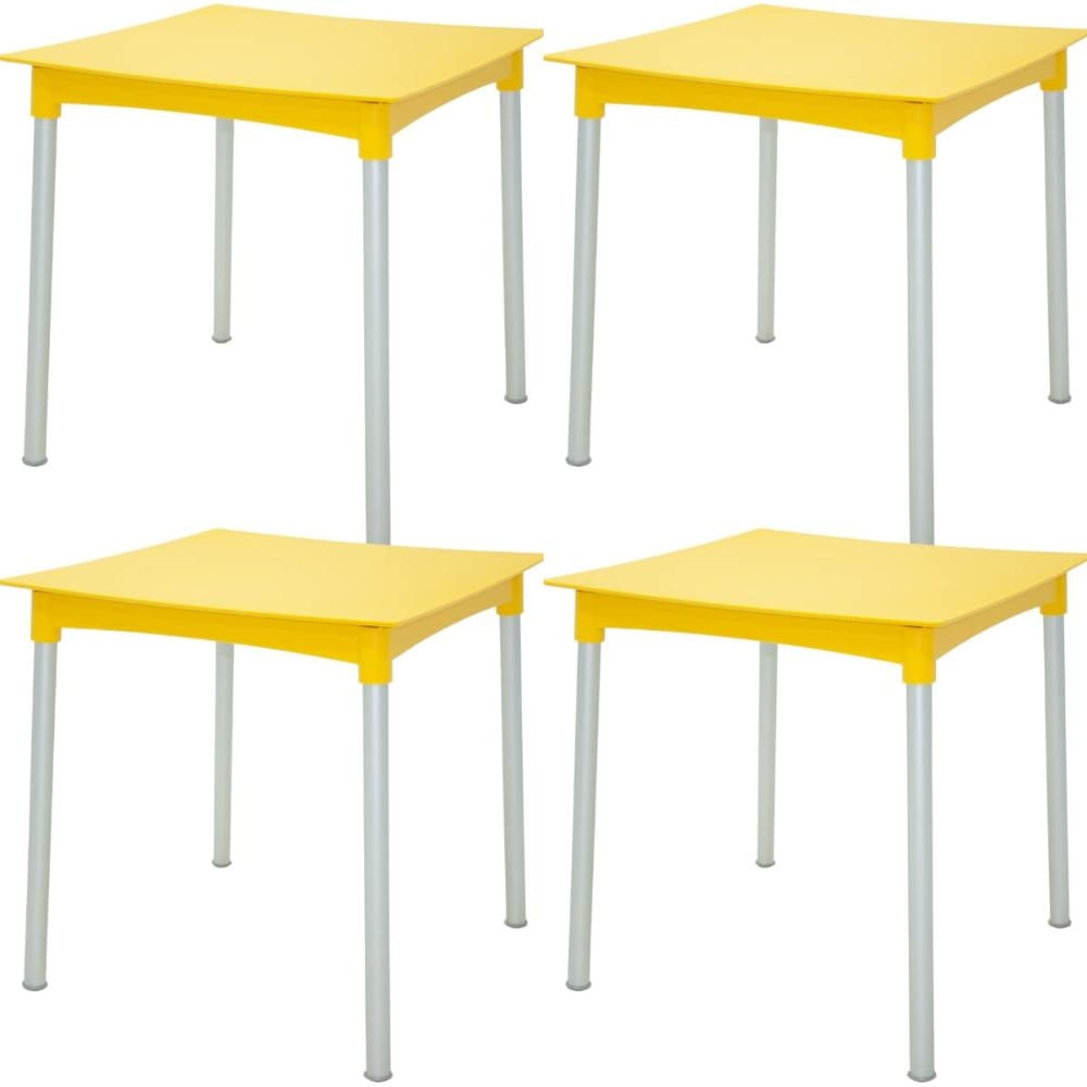 Kit 4 Mesas Tramontina 70cm Amarelo Plástico Pés de Alumínio Lanchonetes Pubs Bares
