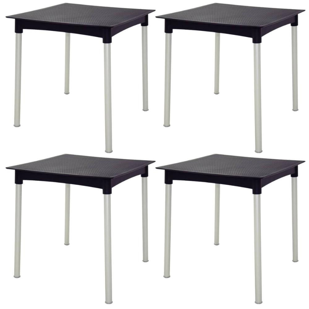 Kit 4 Mesas Tramontina Plástico Rattan Preto Pés de Alumínio Laura Área Interna Externa