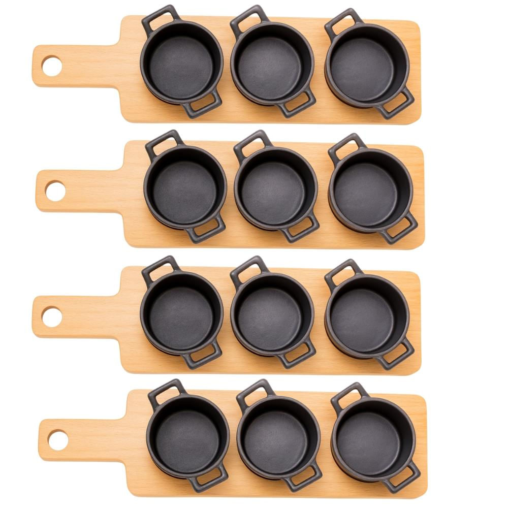 Eleve a apresentação dos seus aperitivos com o kit de 4 petisqueiras da Wolff, perfeito para servir com elegância e praticidade. Cada bandeja mede 28,5x10cm e é confeccionada em bambu natural, combinando durabilidade com um toque rústico sofisticado. O kit inclui 3 ramekins em formato de panelinha em cada petisqueira, ideais para organizar molhos, pastinhas ou pequenas porções de petiscos, garantindo uma apresentação impecável. Perfeito para reuniões, festas ou momentos especiais, une design moderno e funcionalidade, tornando o servir aperitivos ainda mais charmoso e organizado.