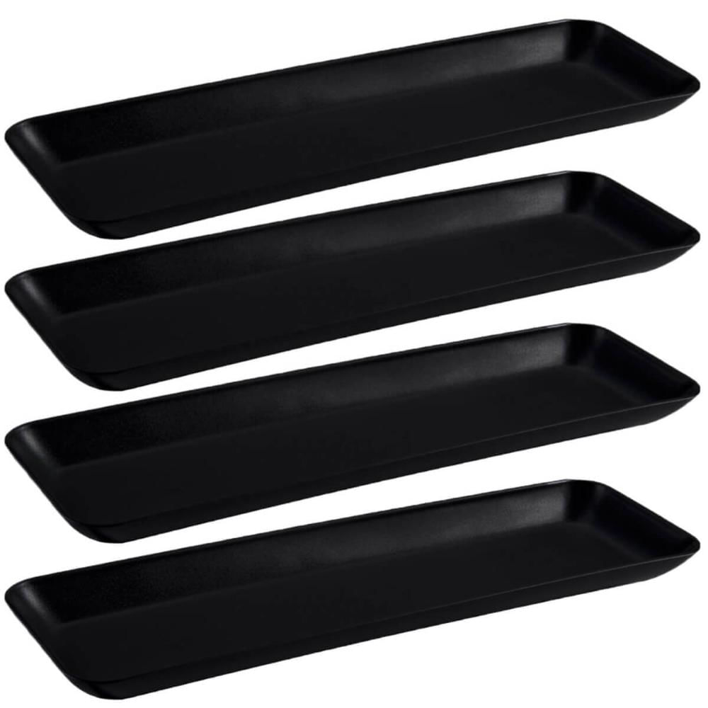 Garantia: 90 dias / Peso: 340g / Cor: Branco ou Preto / Ref: 10618000X4 Dimensões De Cada: 31,8cm (C) x 9,5cm (L) x 3cm (A) Cuidados: Não lavar com Materiais Abrasivos. Comporta: Petiscos. Conteúdo: Quatro petisqueiras.