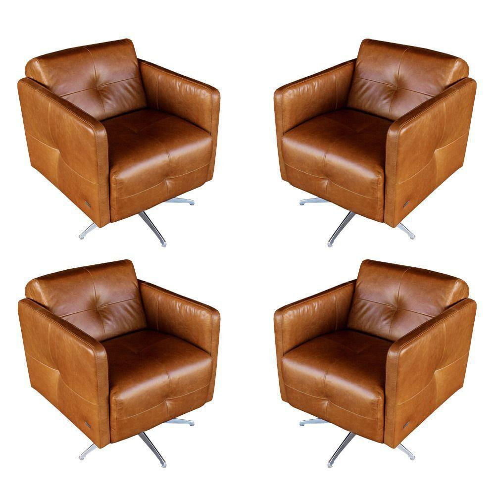 Kit 4 Poltronas Giratória para Sala de Estar Astana Couro Marrom - Gran Belo