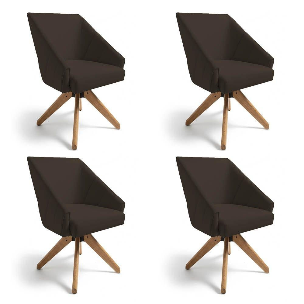 Kit 4 Poltronas Giratórias Alana Suede Marrom Base De Madeira - Pallazio