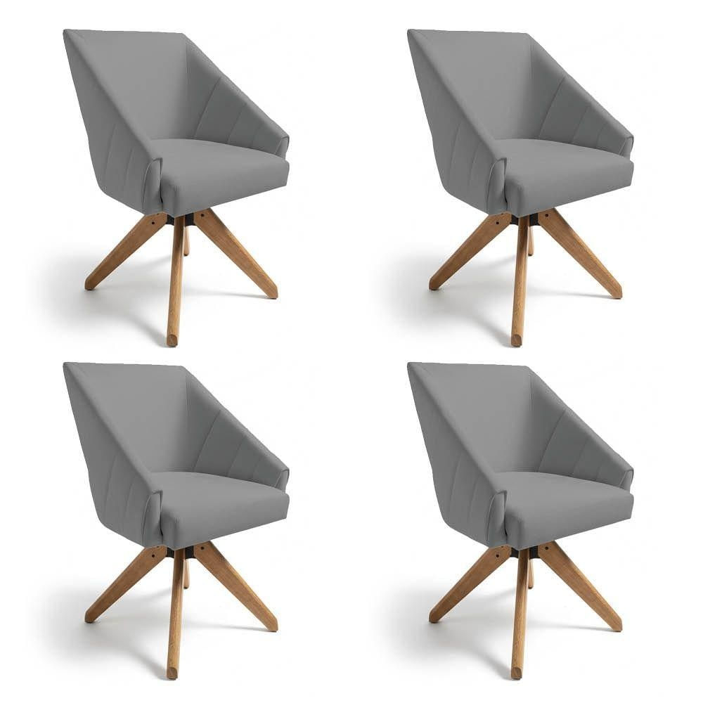 Kit 4 Poltronas Giratórias Alana Veludo Grafite Base De Madeira - Pallazio