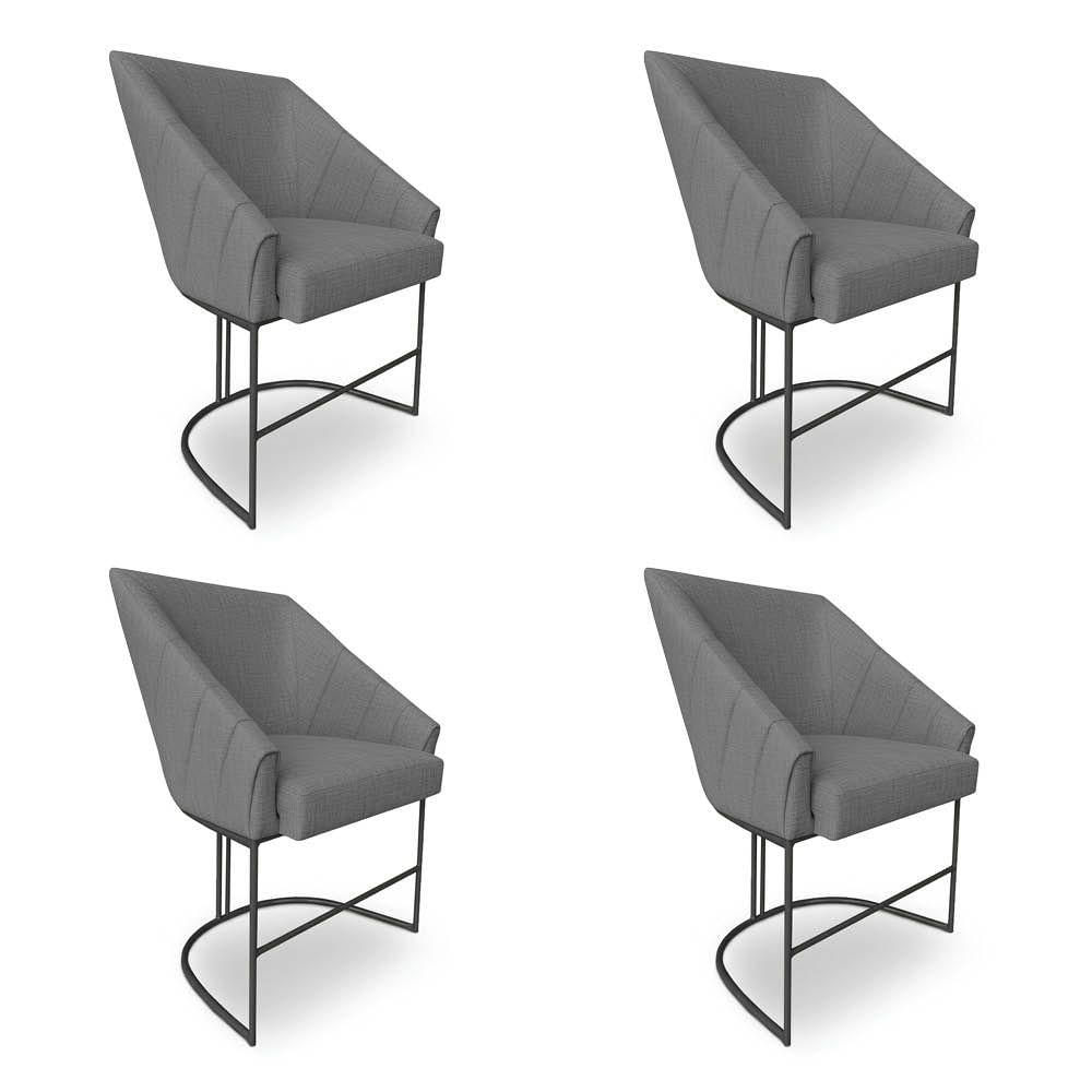 Kit 4 Poltronas Luxo Alana Linho Base Ferro Preto - Pallazio Cor Grafite