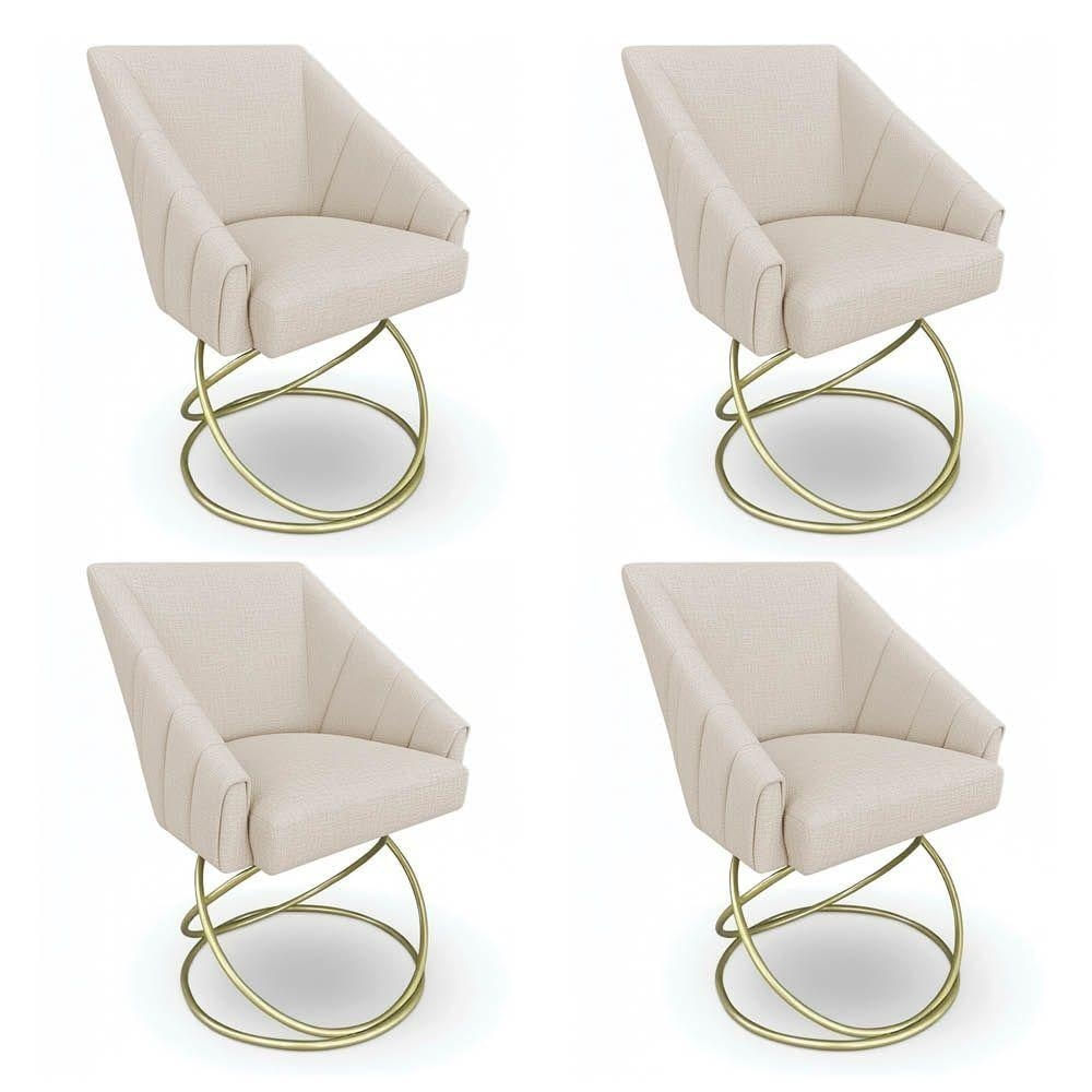Kit 4 Poltronas Luxo Alana Linho Base Luxo Dourado - Pallazio Cor Bege