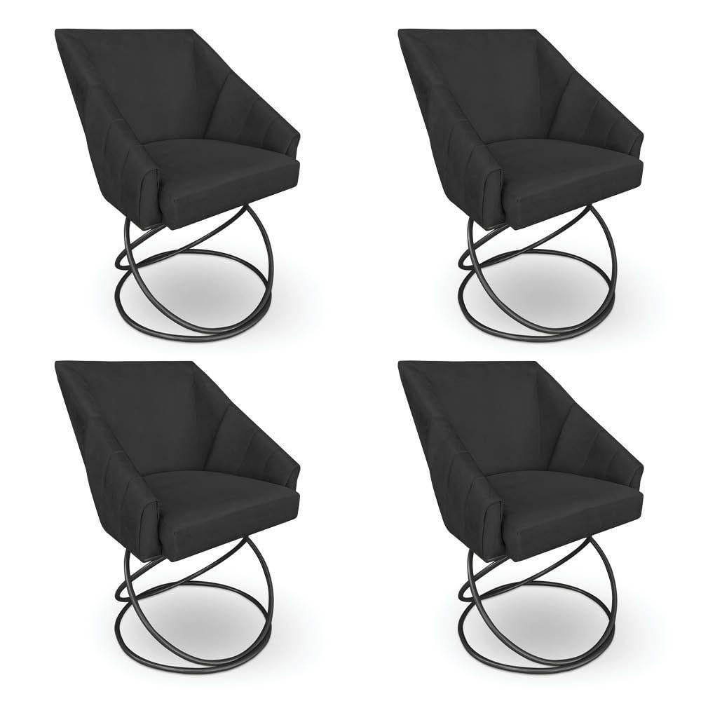 Kit 4 Poltronas Luxo Alana Suede Preto Base Luxo Preto - Pallazio