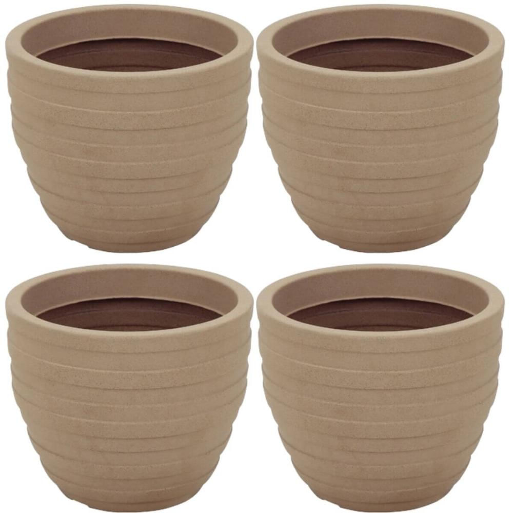 Kit 4 Vasos de Flor 38cm Inca Tramontina Polietileno Granito Areia Decorativo Plantas Folhagens