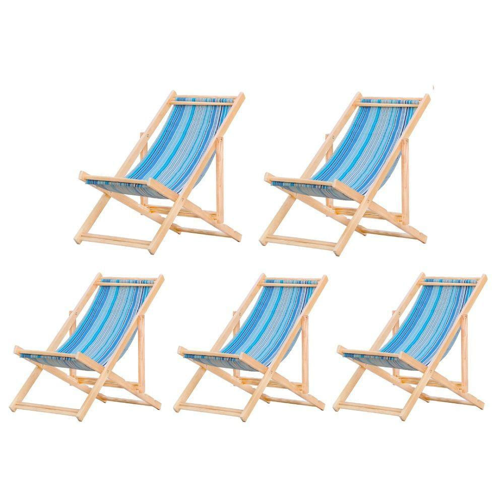 5 ESPREGUIÇADEIRAS EM MADEIRA S/B Sabe aquele final de tarde que você tanto espera para tirar um descanso merecido? Ou aquela viagem para a praia programada a meses com a família? Pois é, nossas cadeiras espreguiçadeira serve exatamente para esses momentos, com várias opções de cores, os tecidos além de charmosos são hidro-repelentes e se adequam a qualquer ambiente, facilmente removíveis para higienização.Estrutura 100% de madeira maciça de ótima qualidade, a espreguiçadeira é totalmente dobrável e reclinável (4 posições de ângulo), perfeita para seu lazer em todos os ambientes, seja ele externo ou interno, esse é o item que definitivamente não pode faltar na vida de quem de fato, quer aproveitar bons momentos! FICHA TÉCNICA DO PRODUTO:04 Níveis de Regulagem de Altura; Tecido Reforçado; Fabricada em Madeira Maciça Pinus; Peso aproximado: 7,5 Kg; Suporta aproximadamente 120 kg; Cor da Madeira: ; Dimensões aproximadas do Produto: Altura 1: 69 cm; Altura 2: 82 cm; Altura 3: 91 cm; Altura 4: 100 cm; Profundidade: 105 cm. Dimensão aproximada total: Comprimento: 135 cm; Largura: 60 cm; Informações Adicionais:Garantia: 90 dias contra defeitos de fabricação. Obs. A cor pode variar da foto conforme a tonalidade da madeira e iluminação.. !!