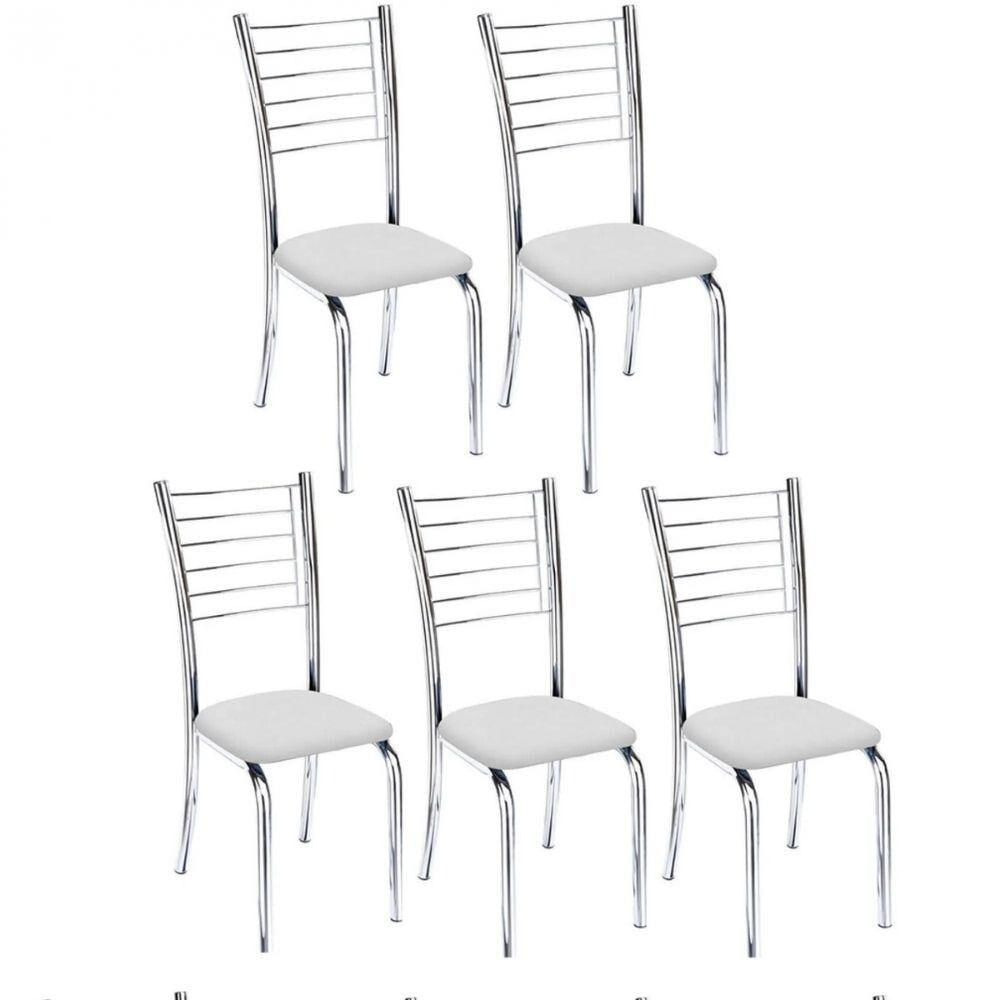 Kit 5 Cadeiras De Jantar Lara Cromada Para Cozinha Assento Corino Branco - Aurora Line