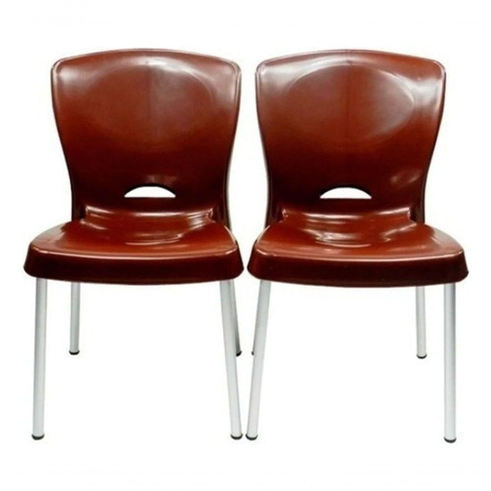 Kit 5 Cadeiras de Plástico Estrutura em Alumínio Assento Liso Forte Até 140 kg Marrom