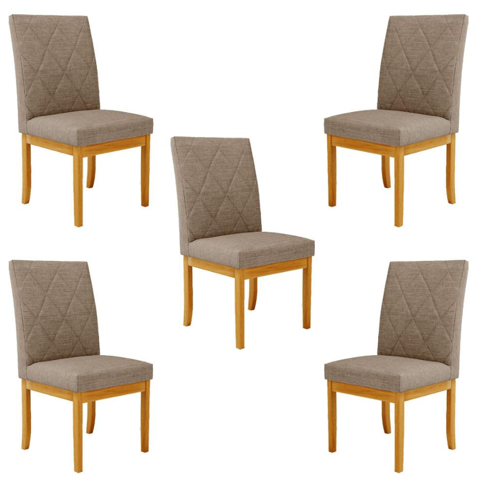 Kit 5 Cadeiras de Sala de Jantar Estofadas Gomes Madeira Maciça Linho Bege Escuro G78 - Gran Belo