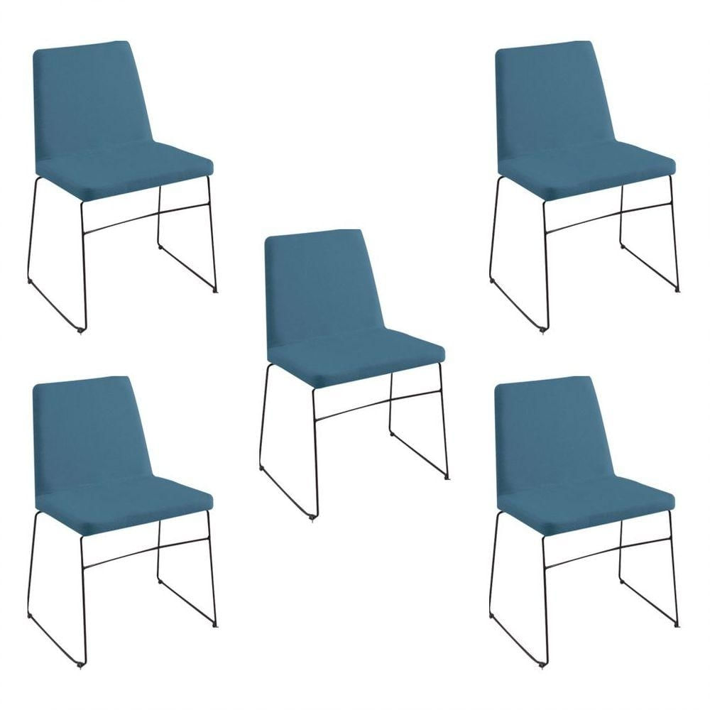 Kit 5 Cadeiras Decorativa Sala De Jantar Anne Linho Azul - Gran Belo