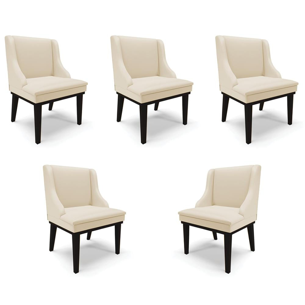 Kit 5 Cadeiras Decorativas Sala de Jantar Base Fixa de Madeira Firenze PU Bege/Preto G19 - Gran Belo