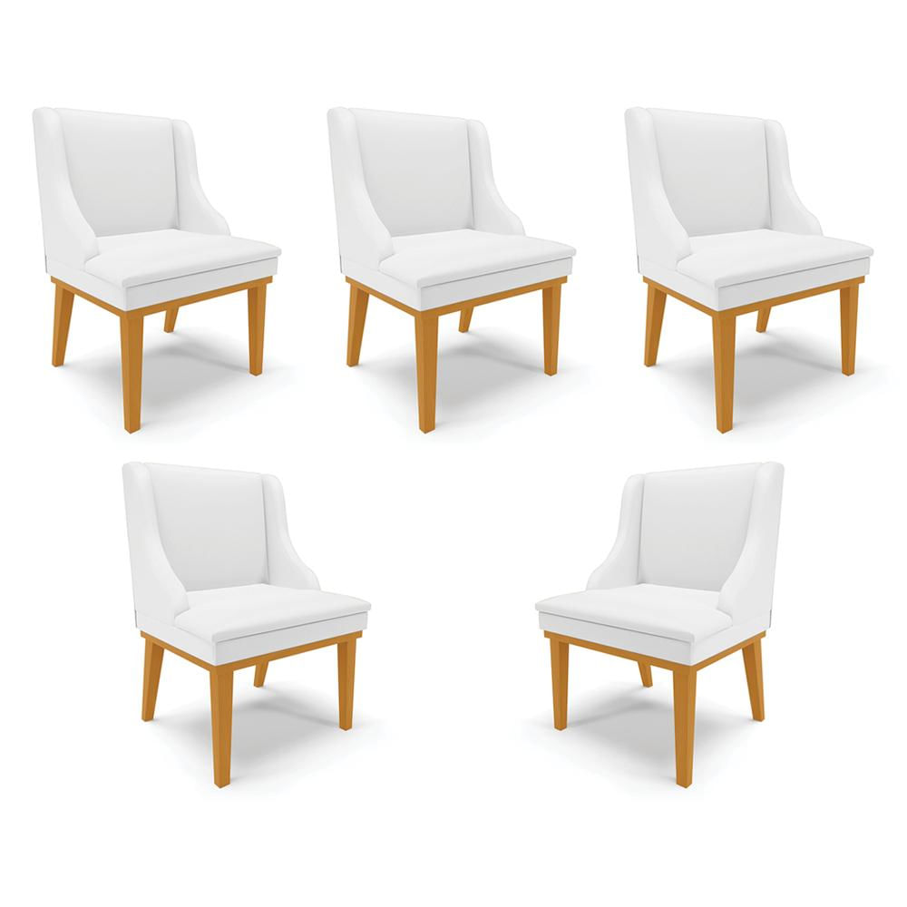 Kit 5 Cadeiras Decorativas Sala de Jantar Base Fixa de Madeira Firenze PU Branco Fosco/Castanho G19 - Gran Belo