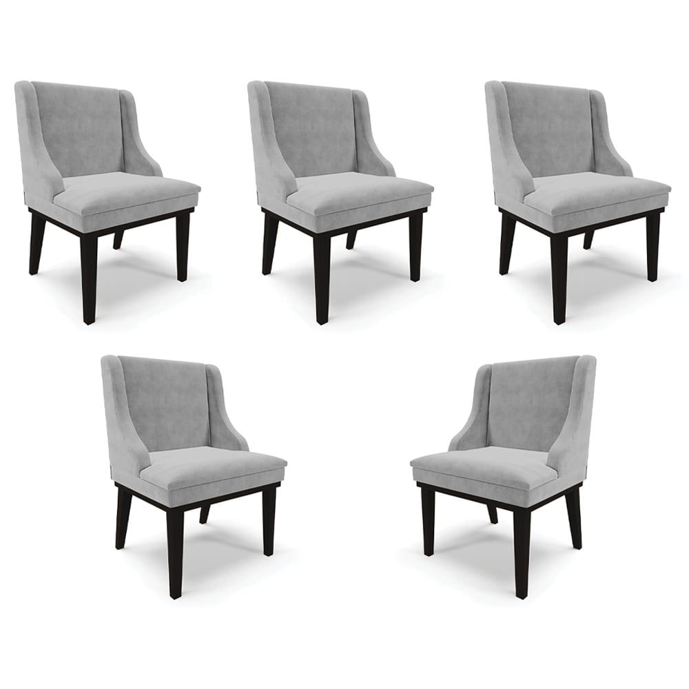 Kit 5 Cadeiras Decorativas Sala de Jantar Base Fixa de Madeira Firenze Suede Cinza/Preto G19 - Gran Belo