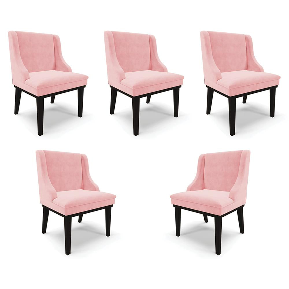 Kit 5 Cadeiras Decorativas Sala de Jantar Base Fixa de Madeira Firenze Suede Rosa Bebê/Preto G19 - Gran Belo