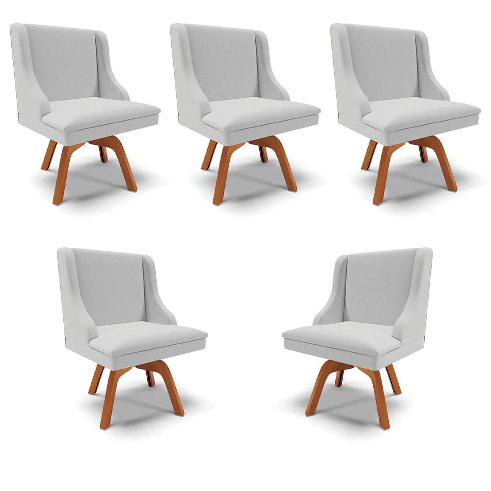 Kit 5 Cadeiras Decorativas Sala de Jantar Base Giratória de Madeira Firenze Linho Cinza/Natural G19 - Gran Belo