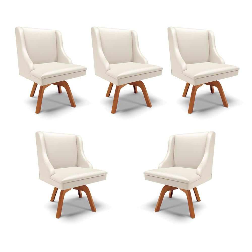 Kit 5 Cadeiras Decorativas Sala de Jantar Base Giratória de Madeira Firenze PU Bege/Natural G19 - Gran Belo