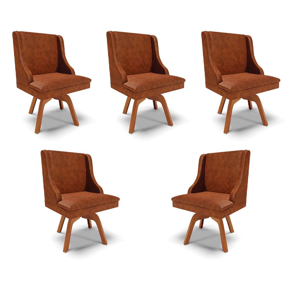Kit 5 Cadeiras Decorativas Sala de Jantar Base Giratória de Madeira Firenze PU Nozes/Natural G19 - Gran Belo