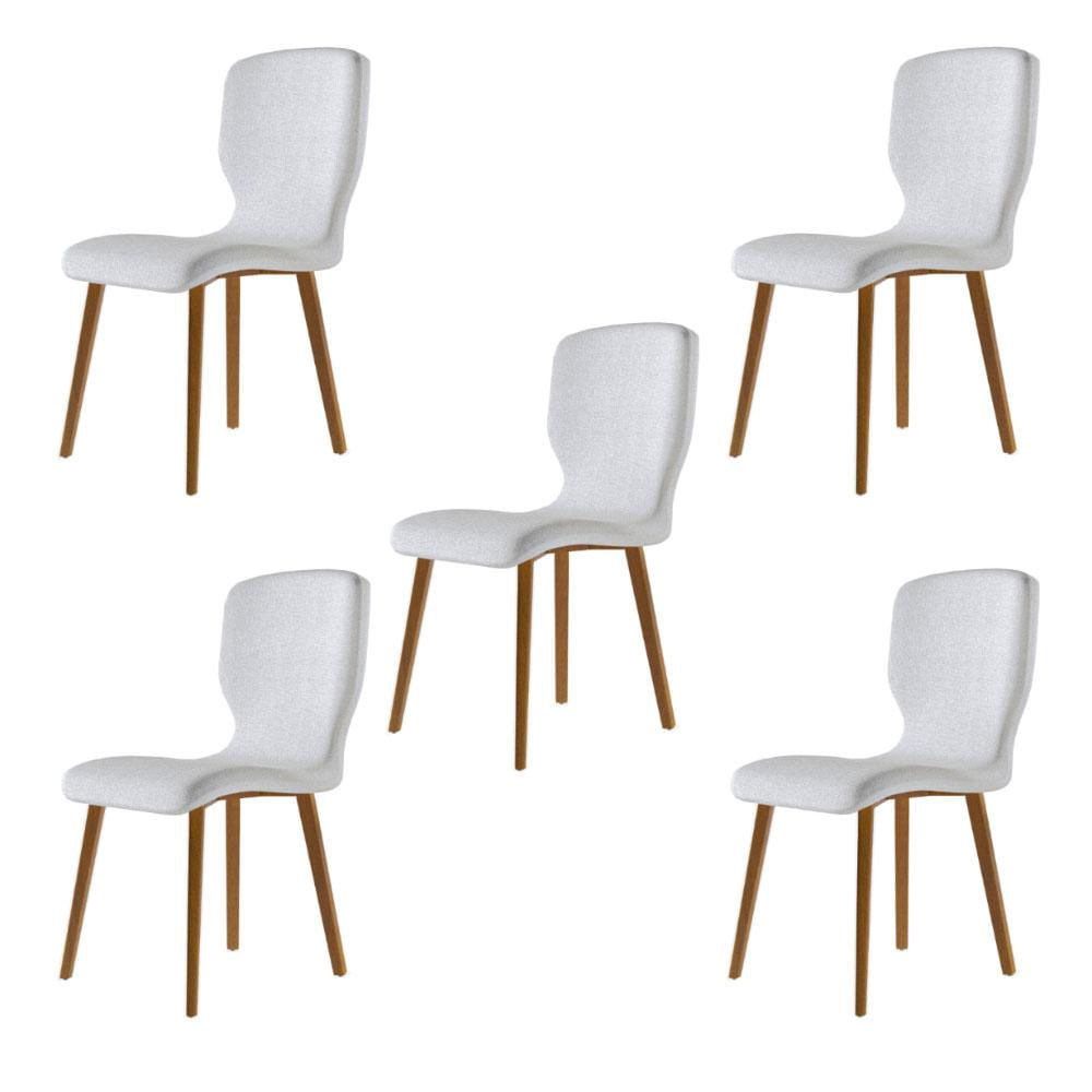 Kit 5 Cadeiras Decorativas Sala de Jantar Madeira Maciça Parker Linho Cinza Claro - Gran Belo