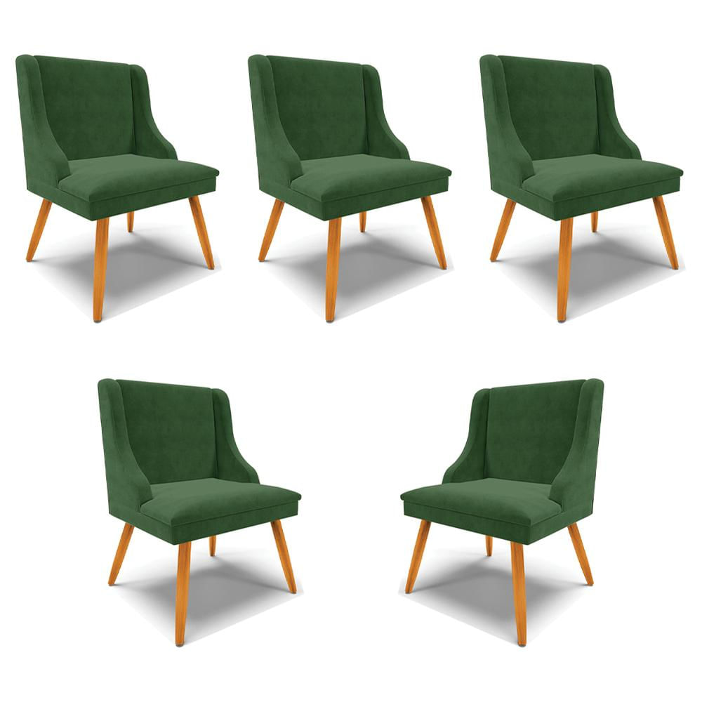 Kit 5 Cadeiras Decorativas Sala de Jantar Pés Palito de Madeira Firenze Suede Verde Esmeralda/Natural G19 - Gran Belo