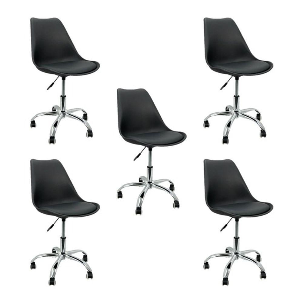 Kit 5 Cadeiras Tulipa Giratória, Home Office, Regulagem De Altura, Preto
