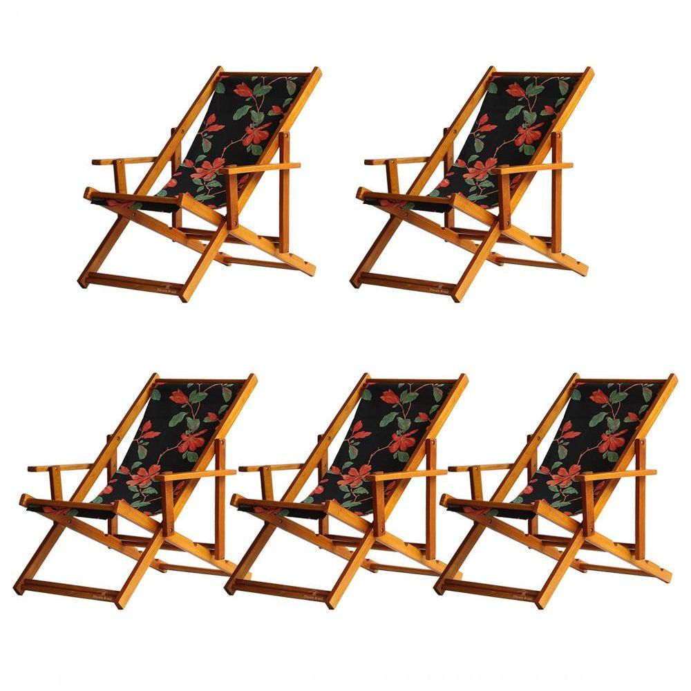 Kit 5 Espreguiçadeira Preguiçosa Dobrável Mel Cb-preto Flores
