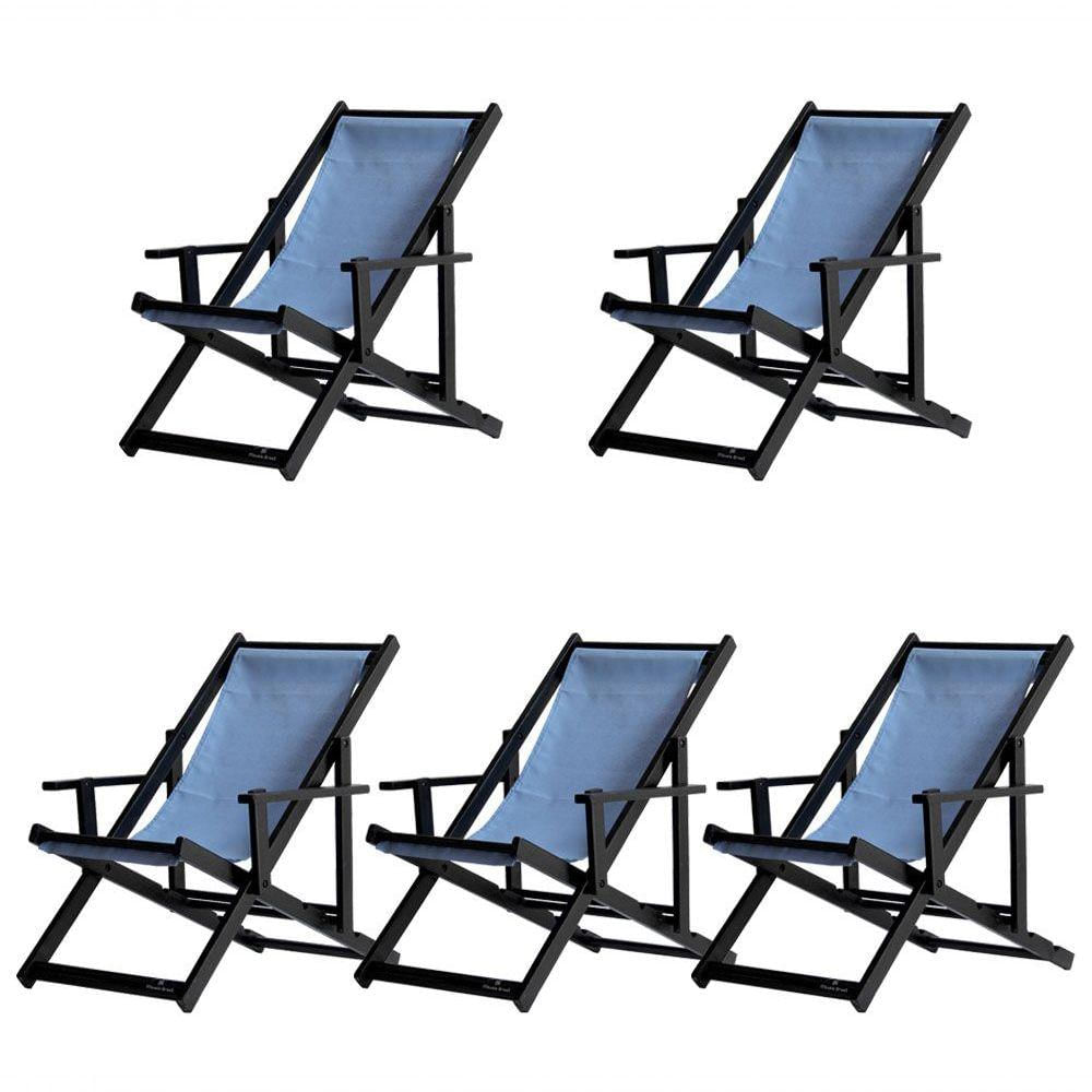 5 ESPREGUIÇADEIRAS ENVERNIZADAS BLACK C/B Sabe aquele final de tarde que você tanto espera para tirar um descanso merecido? Ou aquela viagem para a praia programada a meses com a família? Pois é, nossas cadeiras espreguiçadeira serve exatamente para esses momentos, com várias opções de cores, os tecidos além de charmosos são hidro-repelentes e se adequam a qualquer ambiente, facilmente removíveis para higienização.Estrutura 100% de madeira maciça e verniz especial, que garante sua qualidade e durabilidade, a espreguiçadeira é totalmente dobrável e reclinável (4 posições de ângulo), com descanso para braço, sendo possível montar invertida sem o encosto de braço, perfeita para seu lazer em todos os ambientes, seja ele externo ou interno, esse é o item que definitivamente não pode faltar na vida de quem de fato, quer aproveitar bons momentos! FICHA TÉCNICA DO PRODUTO:04 Níveis de Regulagem de Altura;Tecido Reforçado;Fabricada em Madeira Maciça Pinus;Peso aproximado: 7,5 Kg;Suporta aproximadamente 120 kg;Cor da Madeira: Preta Dimensões aproximadas do Produto:Altura 1: 69 cm;Altura 2: 82 cm;Altura 3: 91 cm;Altura 4: 100 cm;Profundidade: 105 cm. Dimensão aproximada total:Comprimento: 135 cm;Largura: 66 cm; Informações Adicionais:Garantia: 90 dias contra defeitos de fabricação.Acompanha 5 cadeiras Obs. A cor pode variar da foto conforme a tonalidade da madeira e iluminação.. !!
