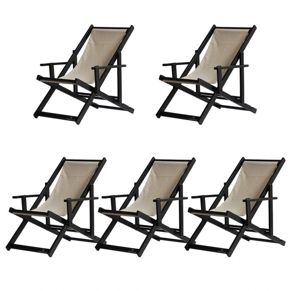 5 ESPREGUIÇADEIRAS ENVERNIZADAS BLACK C/B Sabe aquele final de tarde que você tanto espera para tirar um descanso merecido? Ou aquela viagem para a praia programada a meses com a família? Pois é, nossas cadeiras espreguiçadeira serve exatamente para esses momentos, com várias opções de cores, os tecidos além de charmosos são hidro-repelentes e se adequam a qualquer ambiente, facilmente removíveis para higienização.Estrutura 100% de madeira maciça e verniz especial, que garante sua qualidade e durabilidade, a espreguiçadeira é totalmente dobrável e reclinável (4 posições de ângulo), com descanso para braço, sendo possível montar invertida sem o encosto de braço, perfeita para seu lazer em todos os ambientes, seja ele externo ou interno, esse é o item que definitivamente não pode faltar na vida de quem de fato, quer aproveitar bons momentos! FICHA TÉCNICA DO PRODUTO:04 Níveis de Regulagem de Altura;Tecido Reforçado;Fabricada em Madeira Maciça Pinus;Peso aproximado: 7,5 Kg;Suporta aproximadamente 120 kg;Cor da Madeira: Preta Dimensões aproximadas do Produto:Altura 1: 69 cm;Altura 2: 82 cm;Altura 3: 91 cm;Altura 4: 100 cm;Profundidade: 105 cm. Dimensão aproximada total:Comprimento: 135 cm;Largura: 66 cm; Informações Adicionais:Garantia: 90 dias contra defeitos de fabricação.Acompanha 5 cadeiras Obs. A cor pode variar da foto conforme a tonalidade da madeira e iluminação.. !!