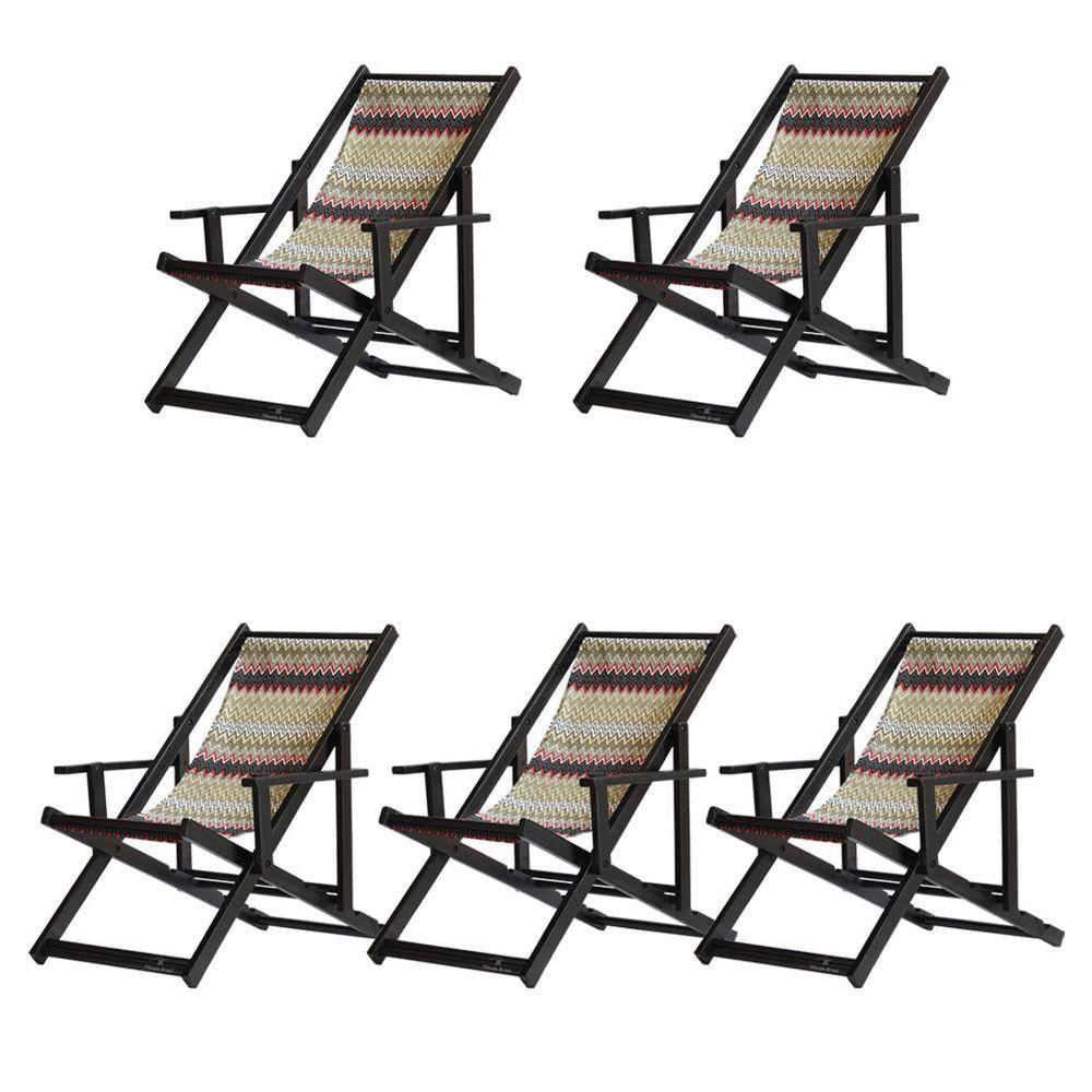 Kit 5 Espreguiçadeiras Dobrável Black Cb-chevron Vermelho