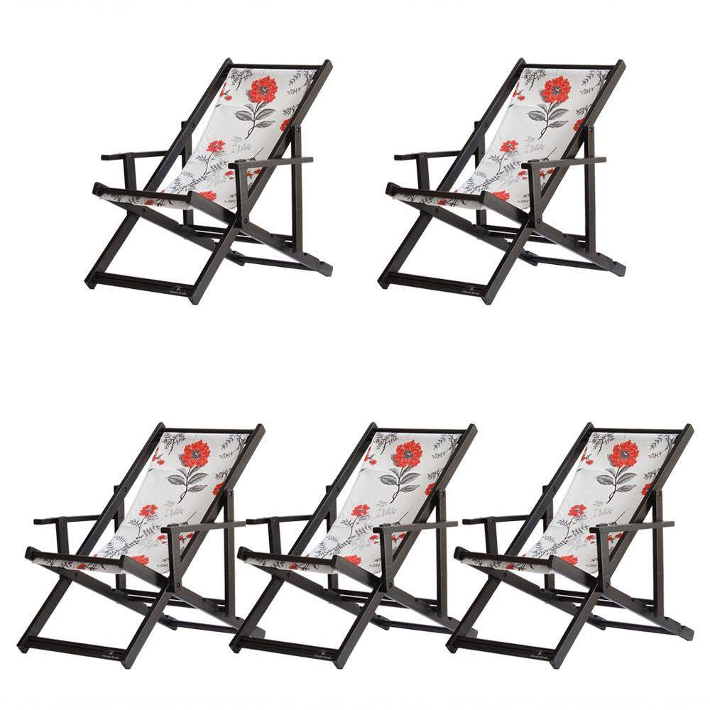 Kit 5 Espreguiçadeiras Dobrável Black Cb-cinza Floral