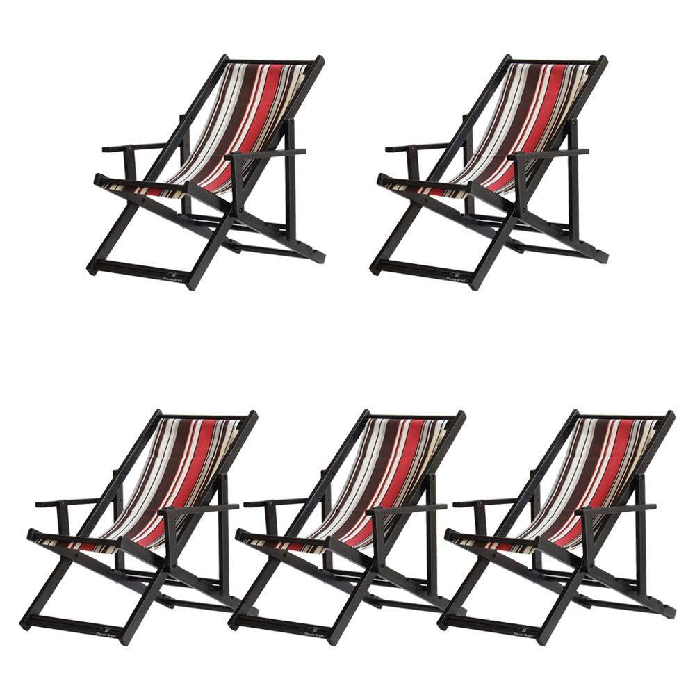Kit 5 Espreguiçadeiras Dobrável Black Cb-l Marrom-vermelho