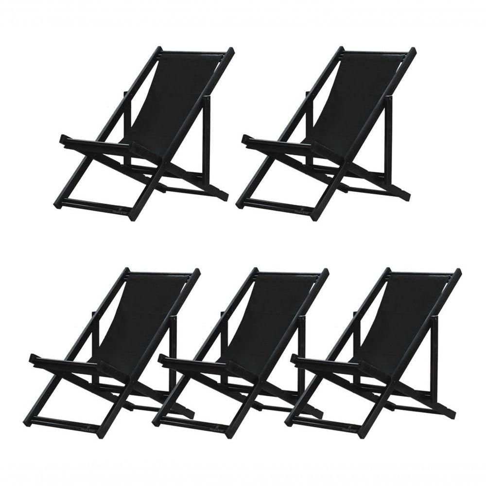 5 ESPREGUIÇADEIRAS ENVERNIZADAS BLACK C/B Sabe aquele final de tarde que você tanto espera para tirar um descanso merecido? Ou aquela viagem para a praia programada a meses com a família? Pois é, nossas cadeiras espreguiçadeira serve exatamente para esses momentos, com várias opções de cores, os tecidos além de charmosos são hidro-repelentes e se adequam a qualquer ambiente, facilmente removíveis para higienização.Estrutura 100% de madeira maciça e verniz especial, que garante sua qualidade e durabilidade, a espreguiçadeira é totalmente dobrável e reclinável (4 posições de ângulo), com descanso para braço, sendo possível montar invertida sem o encosto de braço, perfeita para seu lazer em todos os ambientes, seja ele externo ou interno, esse é o item que definitivamente não pode faltar na vida de quem de fato, quer aproveitar bons momentos! FICHA TÉCNICA DO PRODUTO:04 Níveis de Regulagem de Altura;Tecido Reforçado;Fabricada em Madeira Maciça Pinus;Peso aproximado: 7,5 Kg;Suporta aproximadamente 120 kg;Cor da Madeira: Preta Dimensões aproximadas do Produto:Altura 1: 69 cm;Altura 2: 82 cm;Altura 3: 91 cm;Altura 4: 100 cm;Profundidade: 105 cm. Dimensão aproximada total:Comprimento: 135 cm;Largura: 66 cm; Informações Adicionais:Garantia: 90 dias contra defeitos de fabricação.Acompanha 5 cadeiras Obs. A cor pode variar da foto conforme a tonalidade da madeira e iluminação.. !!
