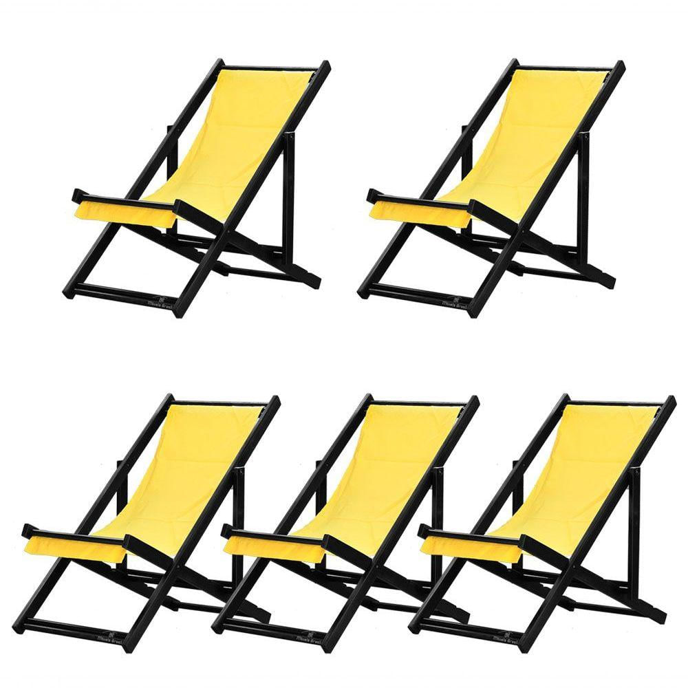 5 ESPREGUIÇADEIRAS ENVERNIZADAS BLACK S/B Sabe aquele final de tarde que você tanto espera para tirar um descanso merecido? Ou aquela viagem para a praia programada a meses com a família? Pois é, nossas cadeiras espreguiçadeira serve exatamente para esses momentos, com várias opções de cores, os tecidos além de charmosos são hidro-repelentes e se adequam a qualquer ambiente, facilmente removíveis para higienização.Estrutura 100% de madeira maciça e verniz especial, que garante sua qualidade e durabilidade, a espreguiçadeira é totalmente dobrável e reclinável (4 posições de ângulo), perfeita para seu lazer em todos os ambientes, seja ele externo ou interno, esse é o item que definitivamente não pode faltar na vida de quem de fato, quer aproveitar bons momentos! FICHA TÉCNICA DO PRODUTO:04 Níveis de Regulagem de Altura;Tecido Reforçado;Fabricada em Madeira Maciça Pinus;Peso aproximado: 7,5 Kg;Suporta aproximadamente 120 kg;Cor da Madeira: PretaAcabamento: Envernizada Dimensões aproximadas do Produto:Altura 1: 69 cm;Altura 2: 82 cm;Altura 3: 91 cm;Altura 4: 100 cm;Profundidade: 105 cm. Dimensão aproximada total:Comprimento: 135 cm;Largura: 60 cm; Informações Adicionais:Garantia: 90 dias contra defeitos de fabricação.Acompanha 5 cadeiras Obs. A cor pode variar da foto conforme a tonalidade da madeira e iluminação..