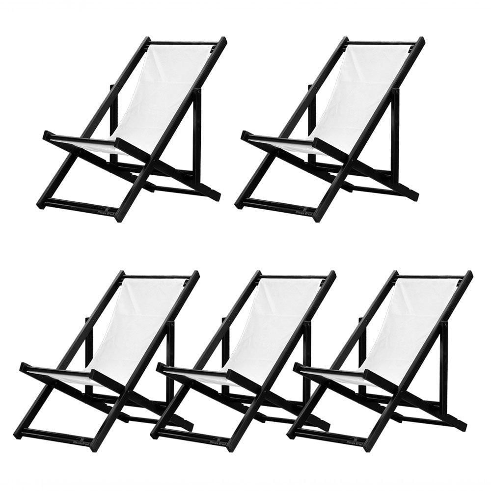 5 ESPREGUIÇADEIRAS ENVERNIZADAS BLACK S/B Sabe aquele final de tarde que você tanto espera para tirar um descanso merecido? Ou aquela viagem para a praia programada a meses com a família? Pois é, nossas cadeiras espreguiçadeira serve exatamente para esses momentos, com várias opções de cores, os tecidos além de charmosos são hidro-repelentes e se adequam a qualquer ambiente, facilmente removíveis para higienização.Estrutura 100% de madeira maciça e verniz especial, que garante sua qualidade e durabilidade, a espreguiçadeira é totalmente dobrável e reclinável (4 posições de ângulo), perfeita para seu lazer em todos os ambientes, seja ele externo ou interno, esse é o item que definitivamente não pode faltar na vida de quem de fato, quer aproveitar bons momentos! FICHA TÉCNICA DO PRODUTO:04 Níveis de Regulagem de Altura;Tecido Reforçado;Fabricada em Madeira Maciça Pinus;Peso aproximado: 7,5 Kg;Suporta aproximadamente 120 kg;Cor da Madeira: PretaAcabamento: Envernizada Dimensões aproximadas do Produto:Altura 1: 69 cm;Altura 2: 82 cm;Altura 3: 91 cm;Altura 4: 100 cm;Profundidade: 105 cm. Dimensão aproximada total:Comprimento: 135 cm;Largura: 60 cm; Informações Adicionais:Garantia: 90 dias contra defeitos de fabricação.Acompanha 5 cadeiras Obs. A cor pode variar da foto conforme a tonalidade da madeira e iluminação..
