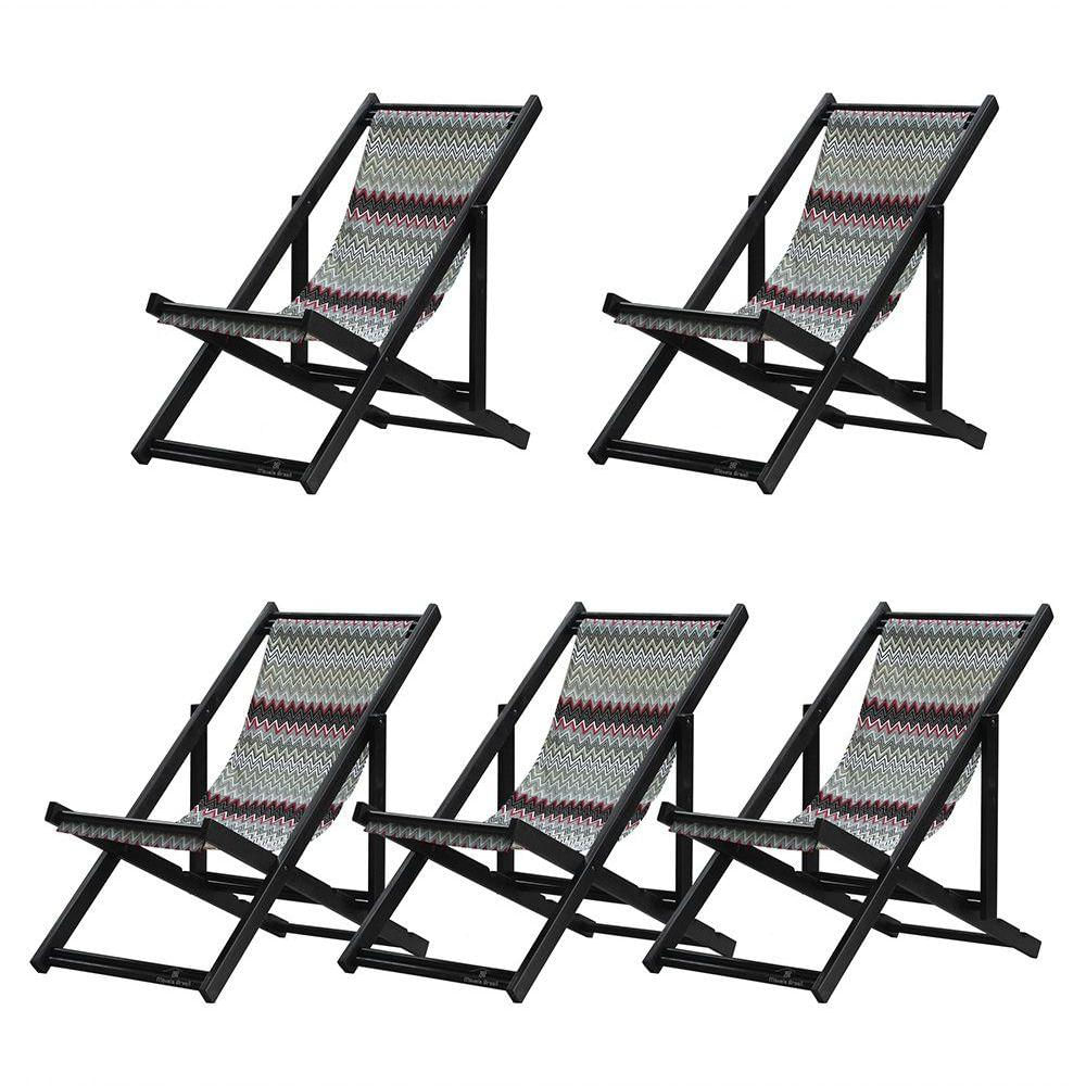 Kit 5 Espreguiçadeiras Dobrável Black Sb-chevron Vermelho