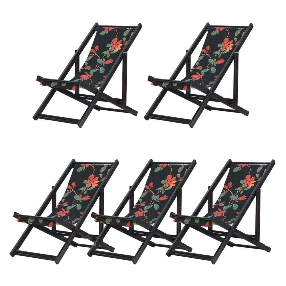 Kit 5 Espreguiçadeiras Dobrável Black Sb-preto Flores