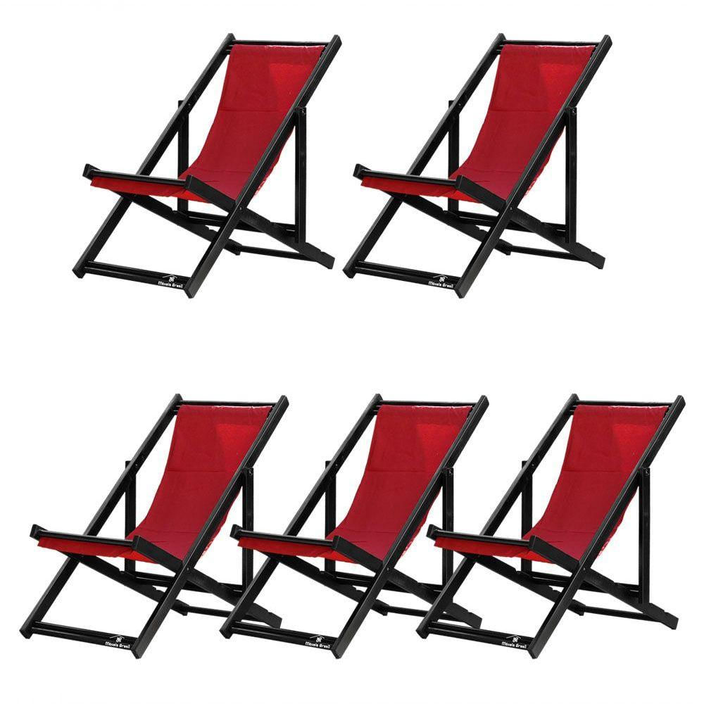 5 ESPREGUIÇADEIRAS ENVERNIZADAS BLACK S/B Sabe aquele final de tarde que você tanto espera para tirar um descanso merecido? Ou aquela viagem para a praia programada a meses com a família? Pois é, nossas cadeiras espreguiçadeira serve exatamente para esses momentos, com várias opções de cores, os tecidos além de charmosos são hidro-repelentes e se adequam a qualquer ambiente, facilmente removíveis para higienização.Estrutura 100% de madeira maciça e verniz especial, que garante sua qualidade e durabilidade, a espreguiçadeira é totalmente dobrável e reclinável (4 posições de ângulo), perfeita para seu lazer em todos os ambientes, seja ele externo ou interno, esse é o item que definitivamente não pode faltar na vida de quem de fato, quer aproveitar bons momentos! FICHA TÉCNICA DO PRODUTO:04 Níveis de Regulagem de Altura;Tecido Reforçado;Fabricada em Madeira Maciça Pinus;Peso aproximado: 7,5 Kg;Suporta aproximadamente 120 kg;Cor da Madeira: PretaAcabamento: Envernizada Dimensões aproximadas do Produto:Altura 1: 69 cm;Altura 2: 82 cm;Altura 3: 91 cm;Altura 4: 100 cm;Profundidade: 105 cm. Dimensão aproximada total:Comprimento: 135 cm;Largura: 60 cm; Informações Adicionais:Garantia: 90 dias contra defeitos de fabricação.Acompanha 5 cadeiras Obs. A cor pode variar da foto conforme a tonalidade da madeira e iluminação..