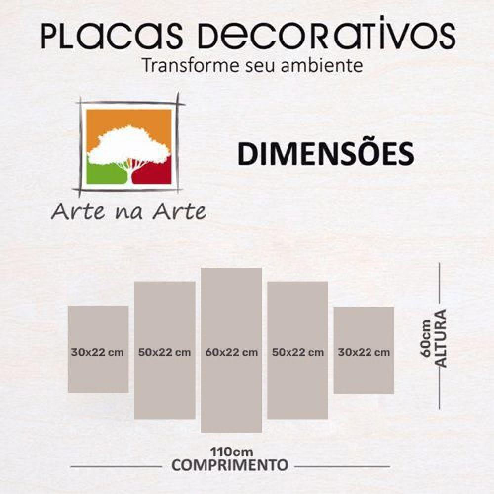 Kit Placas Quadros Decorativos Árvore Cor 5 pçs 3D Borda infinita MEDIDAS - 1 placa de 60x22 cm. - 2 placas de 50x22 cm - 2 placas de 30x22 cm MATERIAL - MDF 3mm de espessura. SEM MOLDURA TIPO DE IMPRESSÃO - Impressão em alta resolução livre de imperfeições. FINALIZAÇÂO - Finalizado em MDF 3mm adesivo vinílico fosco e fita dupla face. OBSERVAÇÕES - Material liso, sem relevos; - Moldura sem vidro (Por que não vai com vidro? Como nossas imagens são impressas em material vinil brilho altamente durável, dispensa o uso do vidro. Fique tranquilo, sua imagem não corre o risco de desbotar); - Fabricação própria; - O produto pode ocorrer de ter uma leve diferença de tom na cor da que está na tela do seu computador ou celular. - Impressão nas bordas para gerar o efeito "infinito" e 3D LIMPEZA APÓS FIXAÇÃO - A limpeza pode ser realizada apenas com um pano seco macio, se desejar pode ser úmido, porém sem conter álcool ou produtos químicos. As Placas decorativas são muito utilizadas por arquitetos e amantes da decoração. Placas do mesmo tom, que possuam correlação e que "ornem" entre si podem ser utilizados juntos para dar uma personalização maior a um determinado ambiente. Composições podem ser utilizadas em salas, cozinhas, varandas, quartos ou qualquer ambiente que você queira deixar com a sua cara. O modelo de bordas infinitas da um destaque especial a peça, dando a impressão de ser criado em 3D, podendo ser observado de todos os ângulos, a disposição dos itens em 5 peças de tamanho diferentes ajudam a criar esse ambiente diferenciado que chama a atenção. Sendo assim a Arte na Arte criou pra você uma enorme variedade em Placas Decorativos de cores e desenhos que seguem as últimas tendências de decoração. Transforme seu ambiente, decore sua sala, quarto, cozinha, escritório ou presenteie alguém especial com as Placas Decorativas Arte na Arte. Esperamos que se sinta à vontade e encontre aqui o SEU estilo, e ao olhar pra o seu ambiente, seja ele qual for - possa dizer: "Agora meu ambiente está completo!" Tire todas suas dúvidas conosco, estamos sempre à disposição. Design Exclusivo Arte na Arte Informações Técnicas