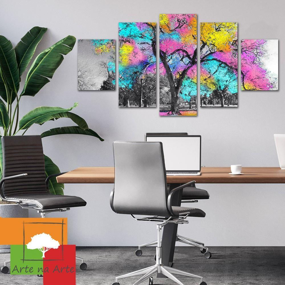 Kit 5 Placa Quadro Decorativo árvore Cor 3d Borda Infinita Titulos Cor Arco íris