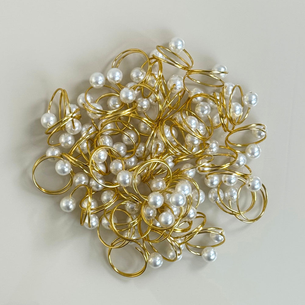 Kit 50 Anéis Para Guardanapos 4,5cm x 4,5cm Pérola Duas Voltas Argola Metal Mesa Posta - Dourado