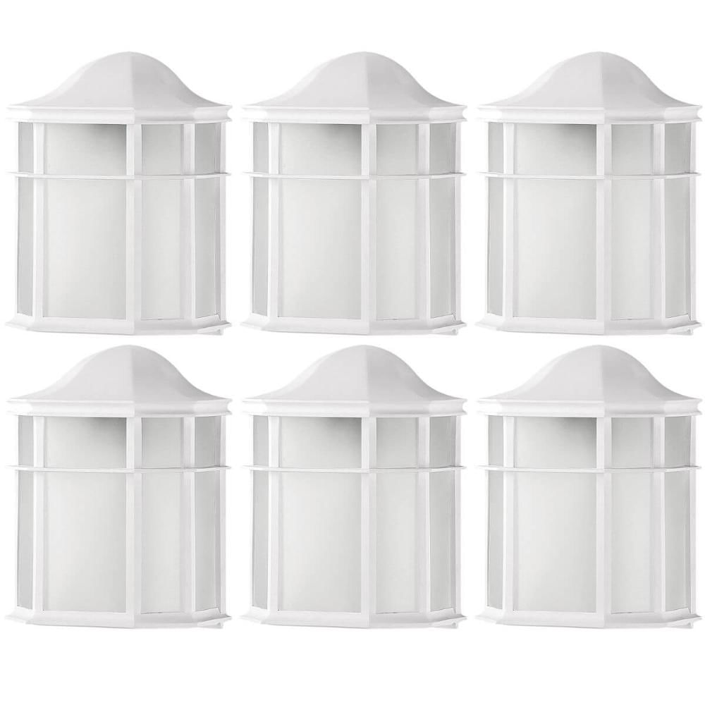 Kit 6 Arandelas Externas de Parede Luminária Clássica Branca 25cm Lente Fosca De Ville Dital