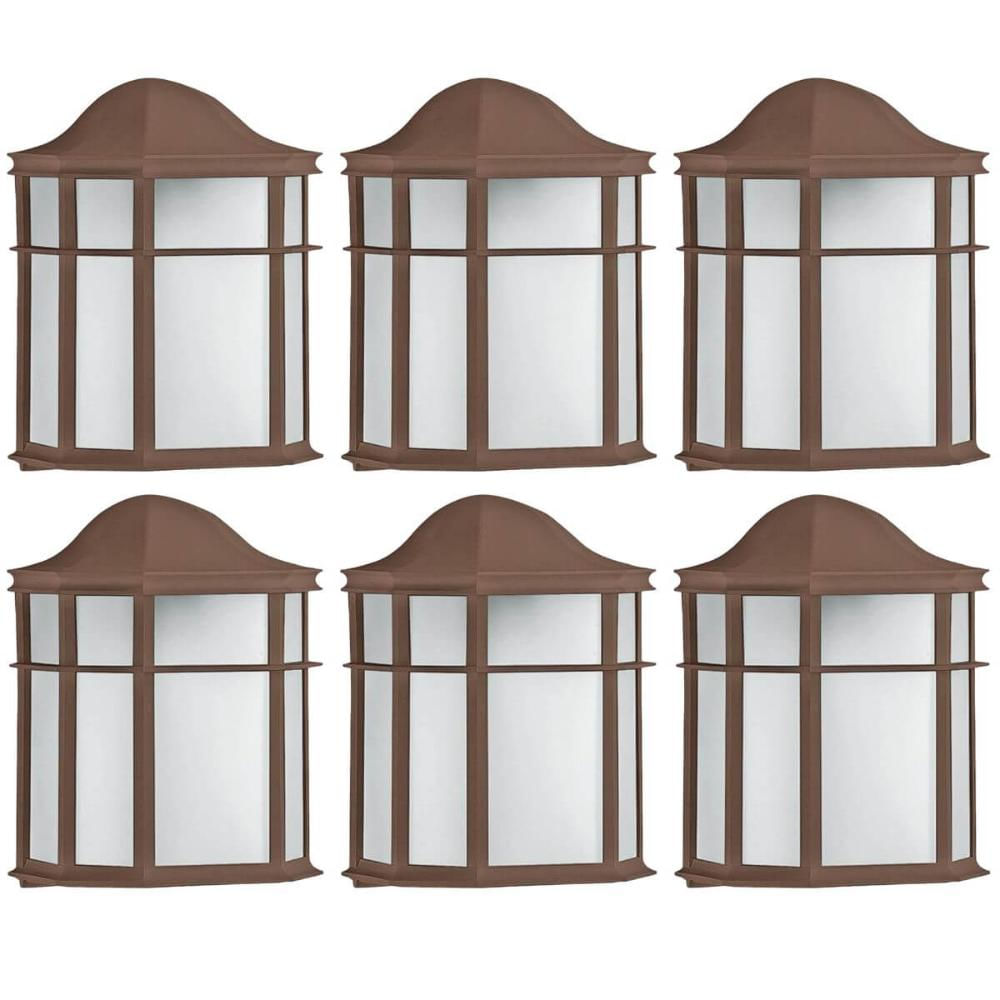 Kit 6 Arandelas Luminárias de Parede Jardim Marrom Colonial 25cm Lente Fosca De Ville Dital