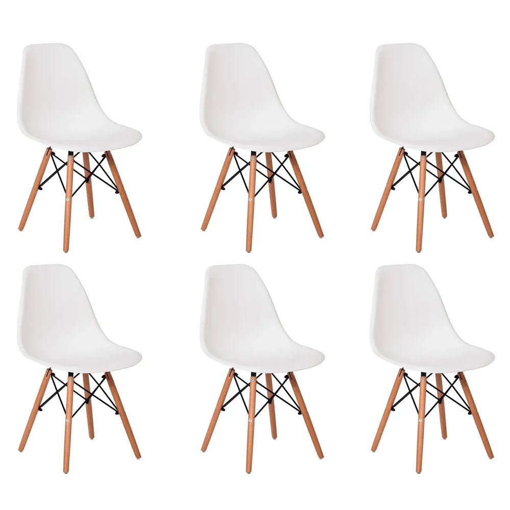 Kit 6 Cadeiras Charles Eames Eiffel Base Madeira Sala De Jantar Cozinha Branco Branco