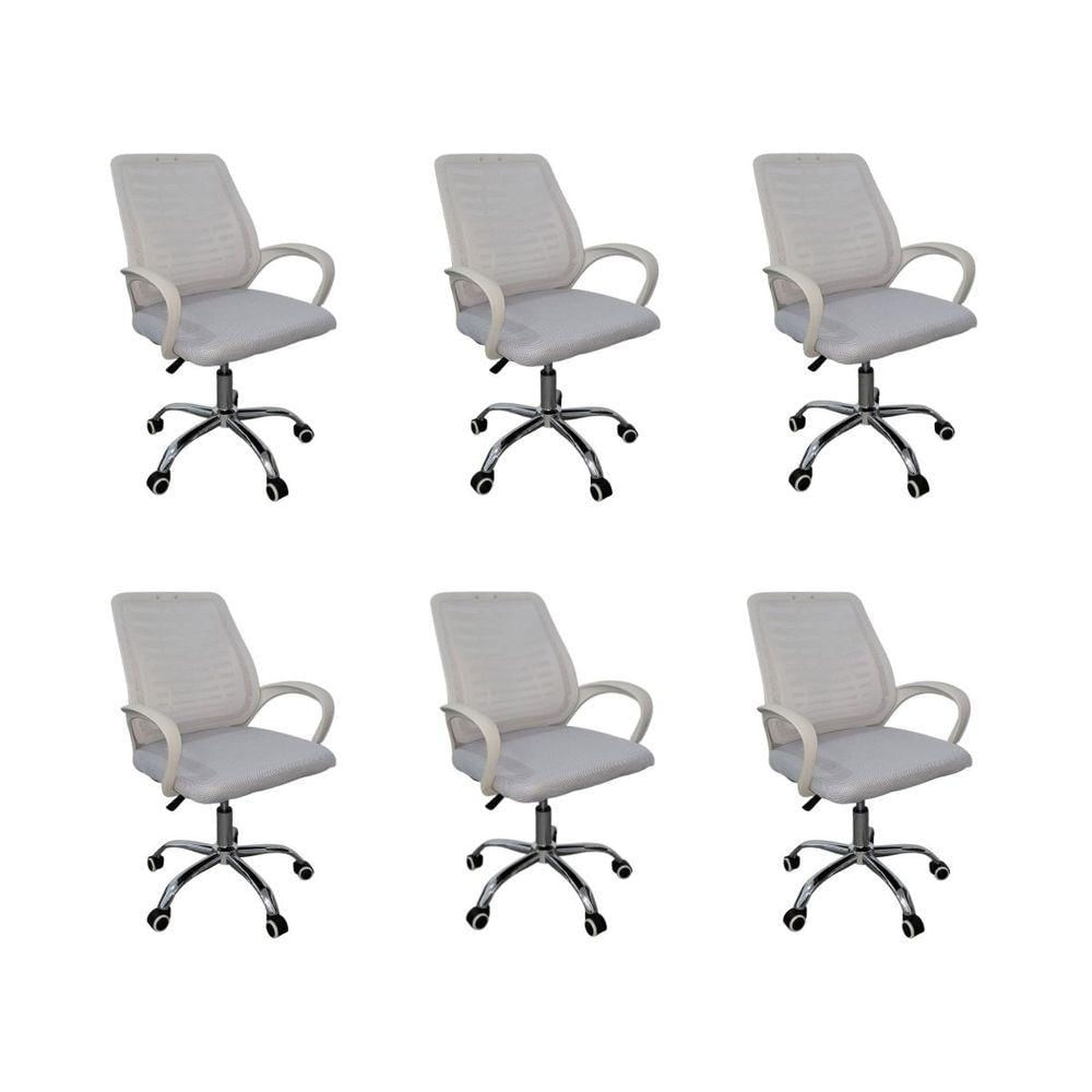 Kit 6 Cadeiras De Escritório Esteirinha Tela Mesh Branco