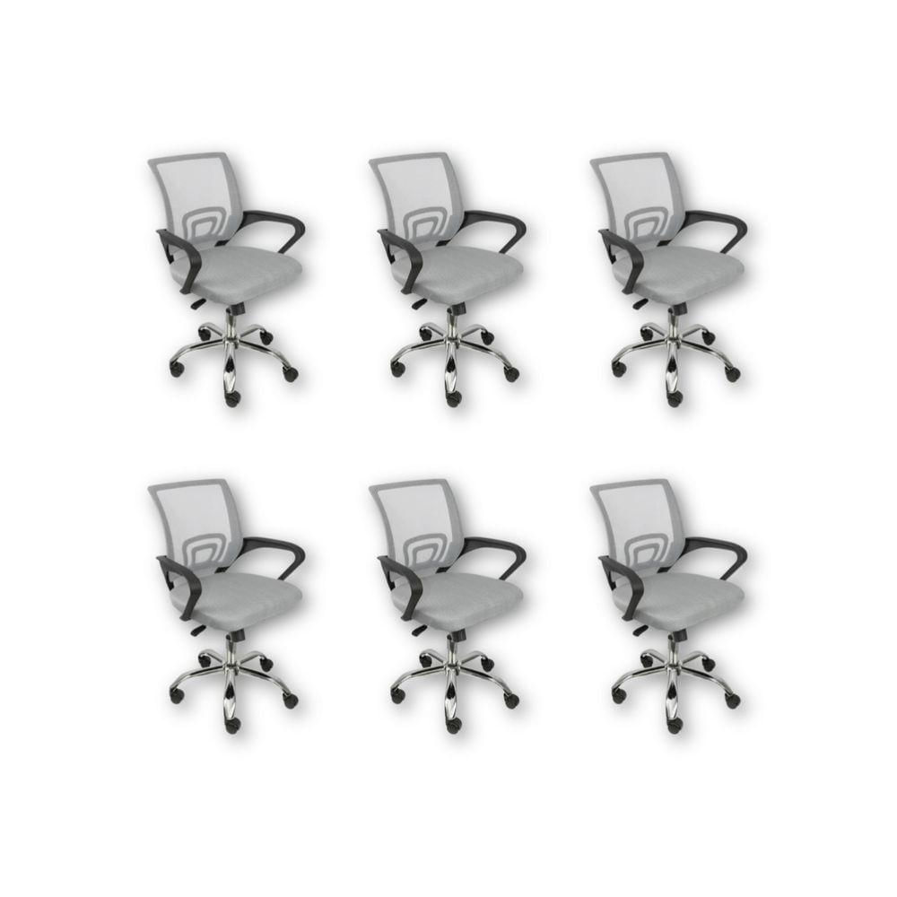 Kit 6 Cadeiras De Escritório Oficial Begonia Tela Mesh Ergonômica Cinza