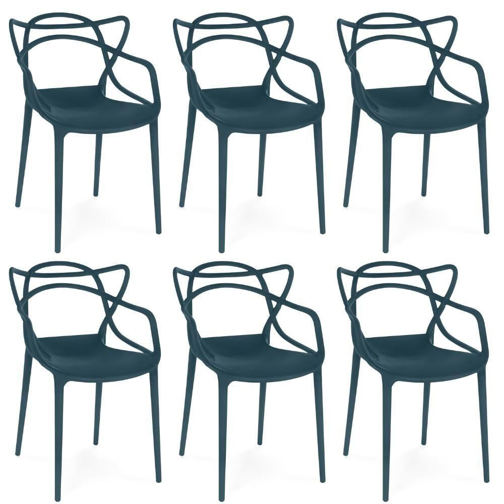 Kit 6 Cadeiras De Jantar Allegra Design Empilhável - Azul Marinho