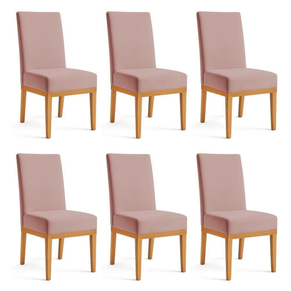Kit 6 Cadeiras De Jantar Brisa Veludo Base De Madeira - Pallazio Cor Rosê