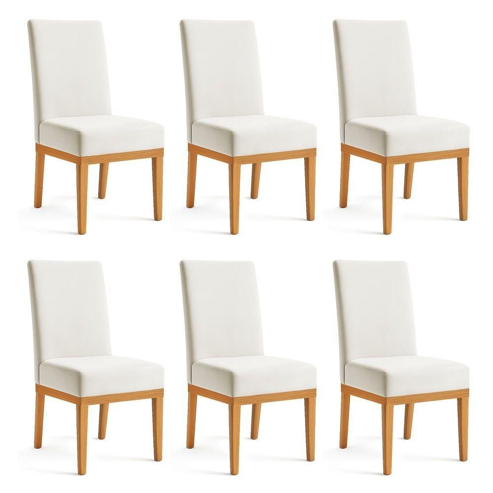 Kit 6 Cadeiras De Jantar Brisa Veludo Bege Base De Madeira - Pallazio